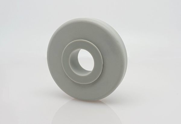 Abweisrad, gefertigt aus einem Material, daher flexibler als die massive Ausführung, geeignet für Rundrohr. Innenliegende Reduzierhülse aus Polyamid 6 (PA 6) (07).