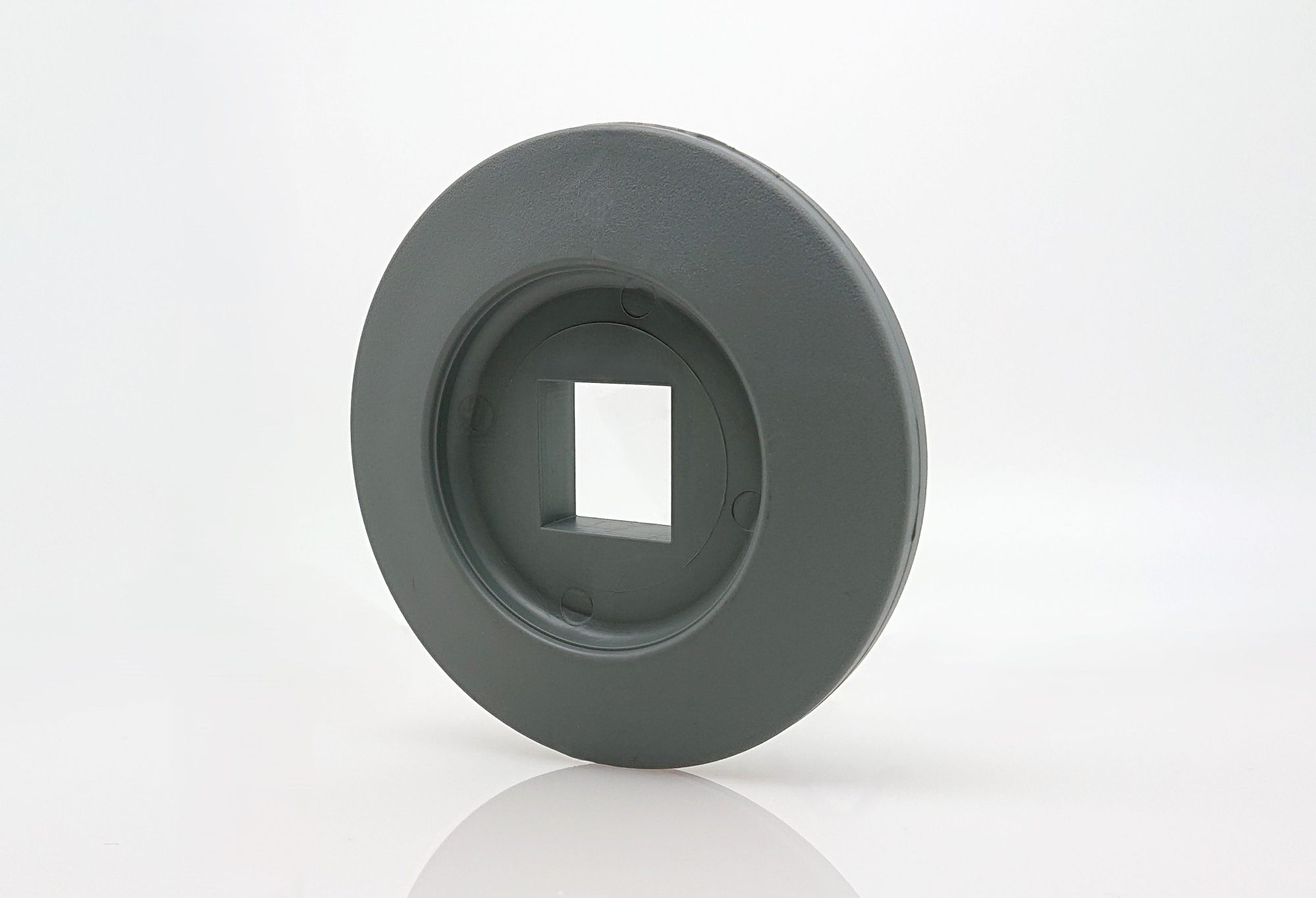 Abweisrad, gefertigt aus nur einem Material, daher flexibler als die massive Ausführung, geeignet für Quadratrohr.