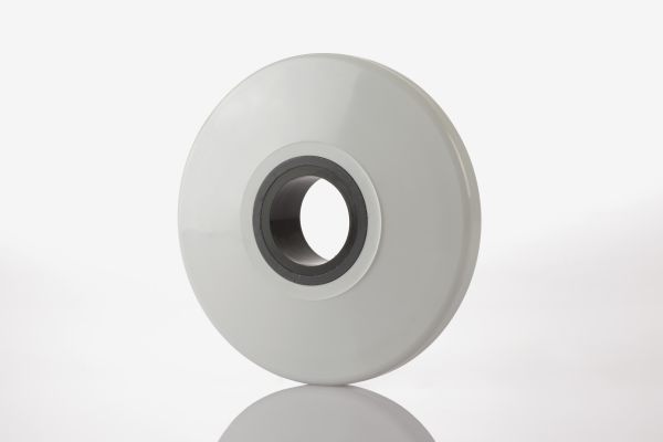 Massives Abweisrad, auch für schwere Anwendungen und Belastungen geeignet, mit verstärktem Innenkern. Geeignet für Rundrohr. Alternativ auch aus Thermoplastischer Elastomere (TPE) (07) verfügbar.