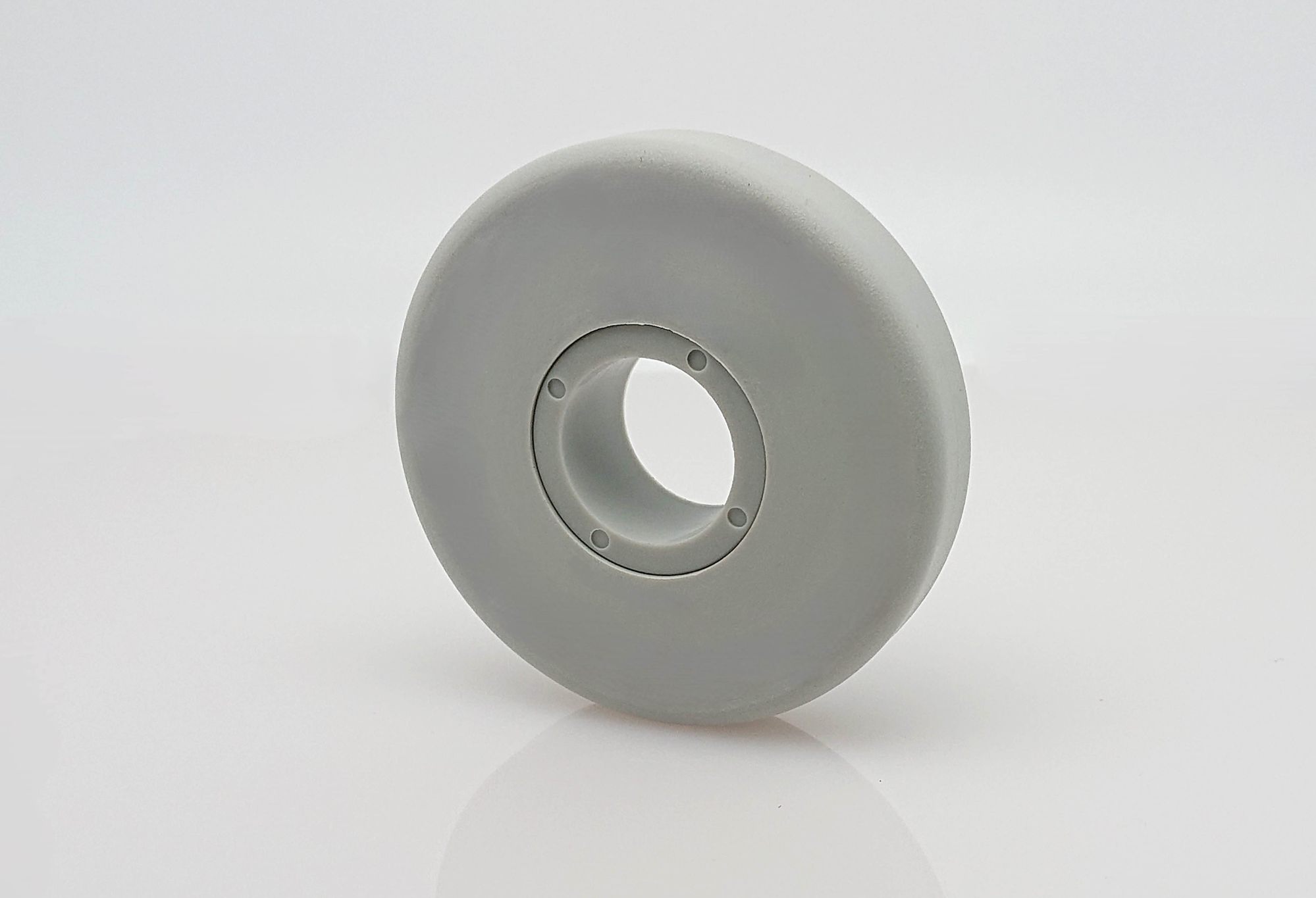 Abweisrad, gefertigt aus einem Material, daher flexibler als die massive Ausführung, geeignet für Rundrohr. Innenliegende Reduzierhülse aus Polyamid 6 (PA 6) (07).