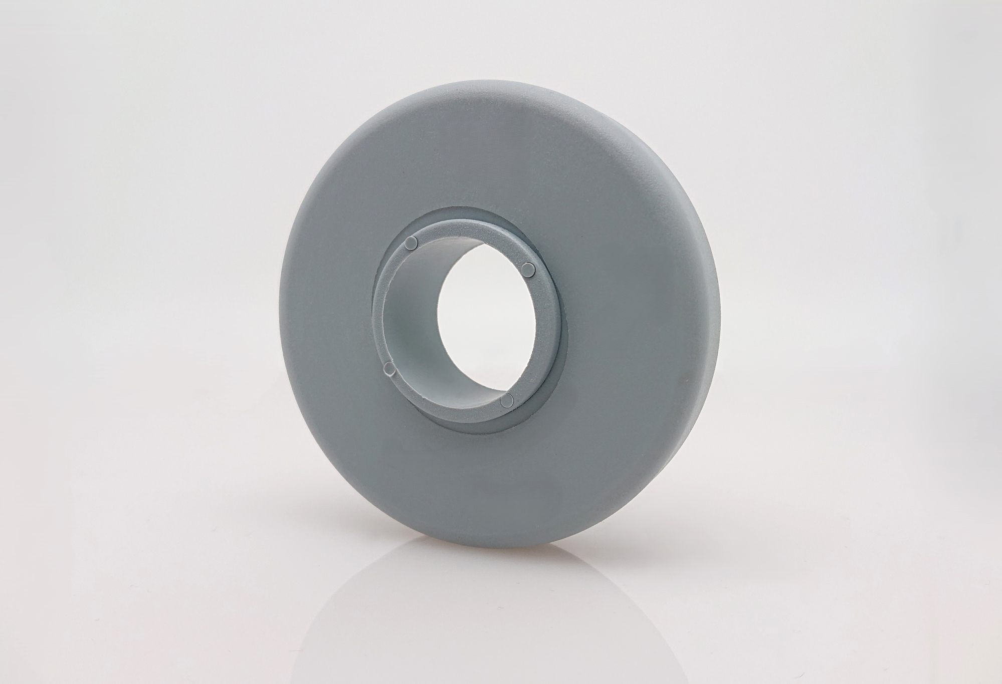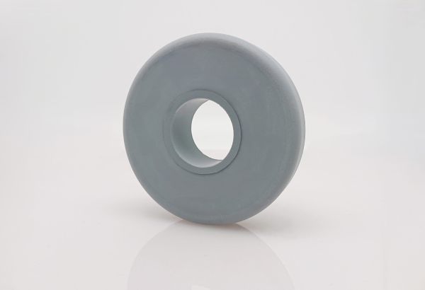 Abweisrad, gefertigt aus einem Material, daher flexibler als die massive Ausführung, geeignet für Rundrohr. Innenliegende Reduzierhülse aus Polyamid 6 (PA 6) (07).