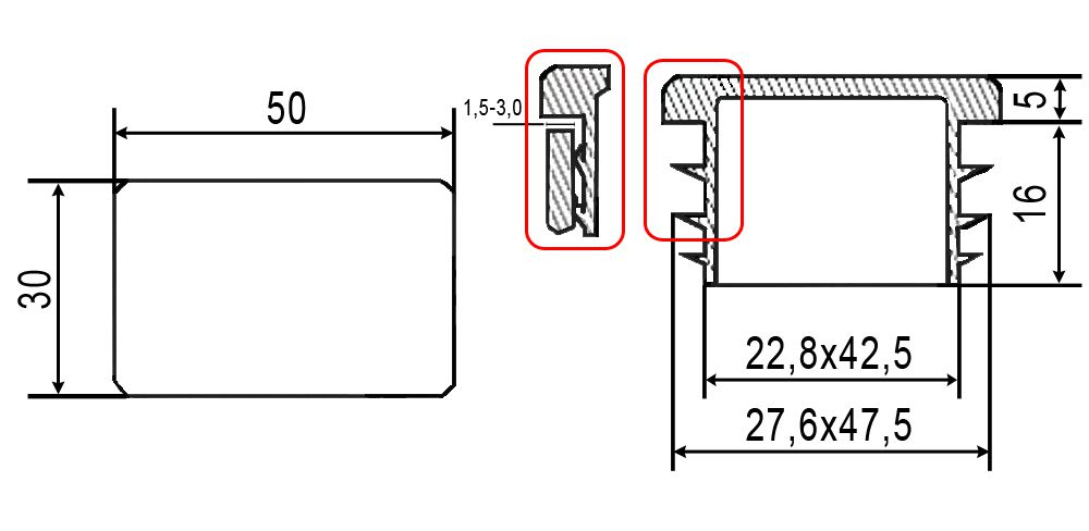 Stopfen Rechteckrohr 50x30
